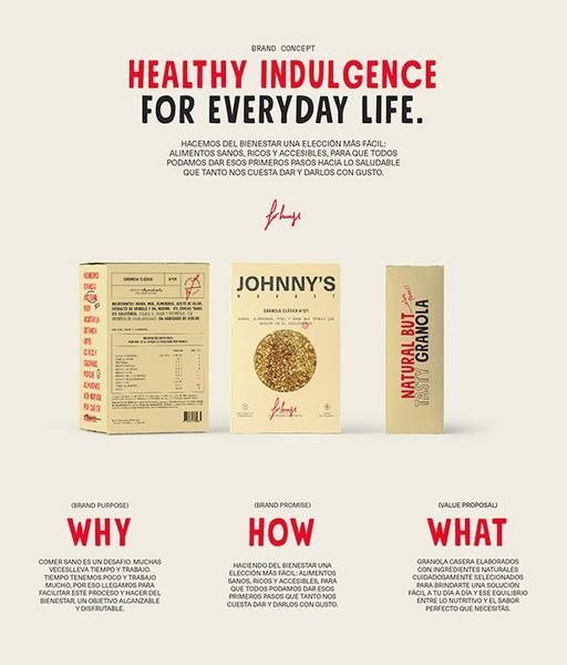 Fuimos convocados por la agencia Bunker3022 para definir la personalidad de marca de Johnny's Granola. Desarrollamos un storytelling emocional y convincente para conectar con una audiencia que consideraba que alimentarse de manera saludable era difícil. Se generó un concepto cuyo mensaje fue que la alimentación saludable es algo fácil, accesible y que nos invita a disfrutar.